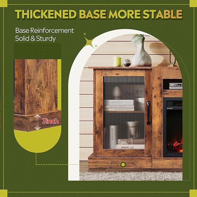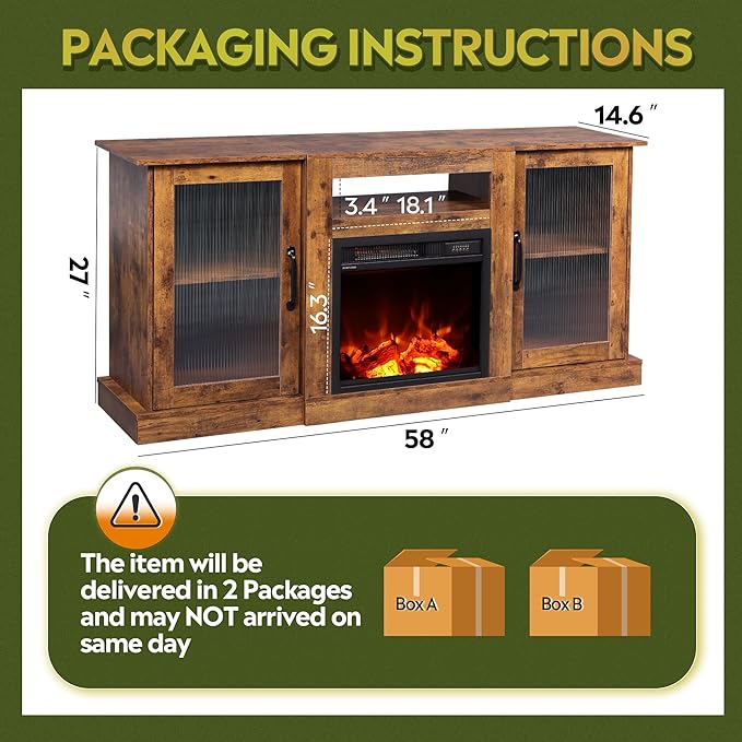 About This 【Fireplace TV Stand with Heater】This 58 "W x 14.6 "D x 27 "H TV stand has a 18-inch...