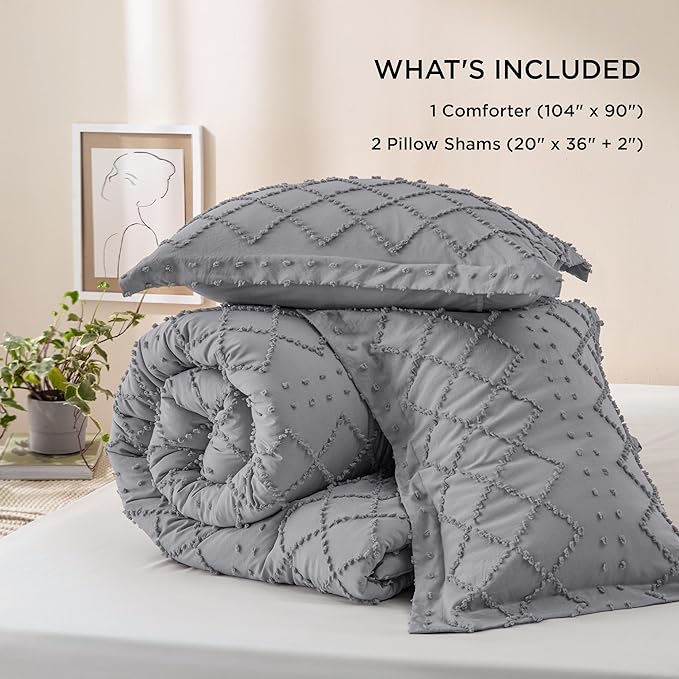 Bedsure King Size Comforter Set - Grey Comforter, Boho Tufted Shabby Chic Bedding Comforter Set, 3 Pieces Vintage Farmhouse Bed Set for All Seasons, Fluffy Soft Bedding Set with 2 Pillow Shams