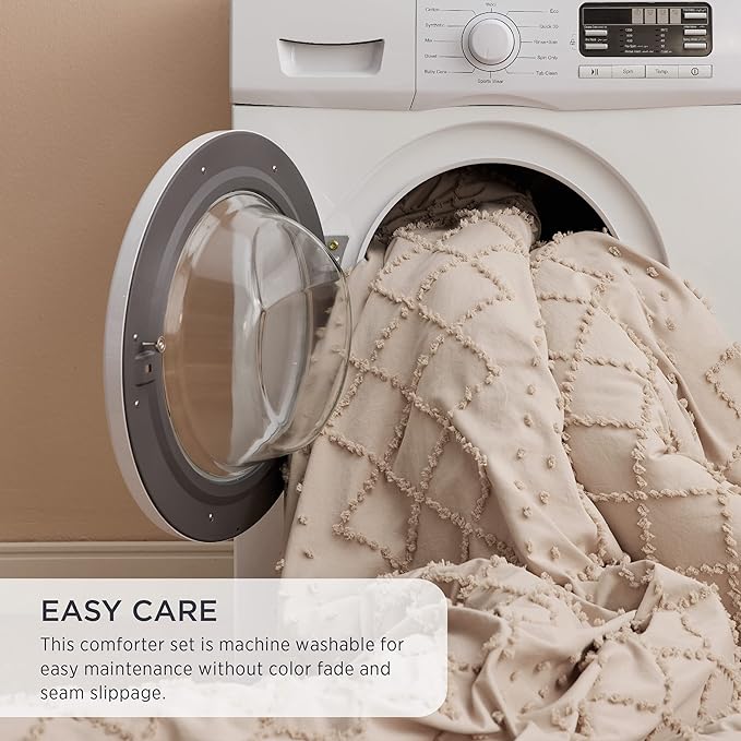 Bedsure California King Comforter Set - Warm Tan Boho Tufted Shabby Chic Bedding Comforter Set, 3 Pieces Vintage Farmhouse Bed Set for All Seasons, Fluffy Soft Bedding Set with 2 Pillow Shams