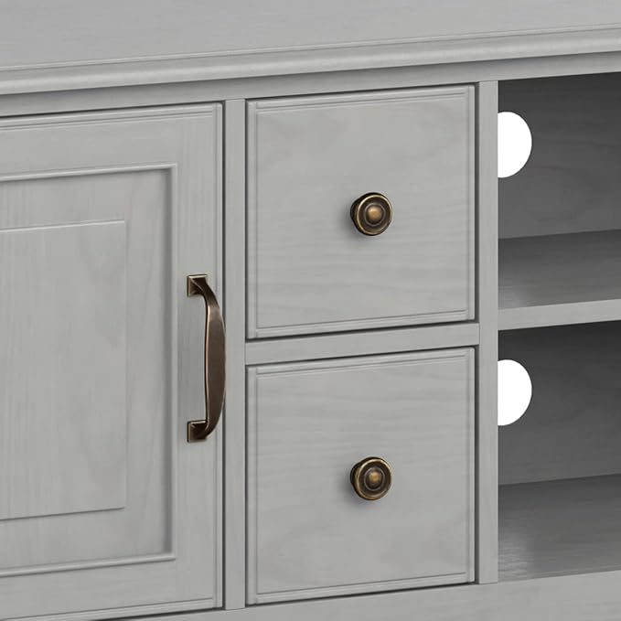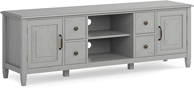 SIMPLIHOME Connaught SOLID WOOD 72 Inch Wide Traditional TV Media Stand in Fog Grey for TVs up to 80 Inches, For the Living Room and Entertainment Center