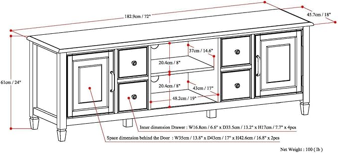 About This DIMENSIONS: 18" D x 72" W x 24" H Handcrafted with care using the finest quality solid wood...