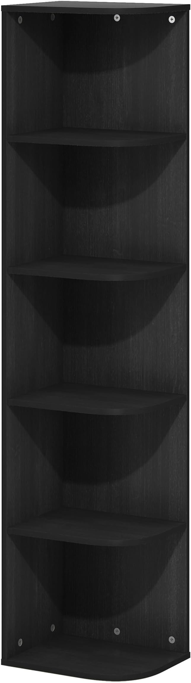 Furinno Pasir 5-Tier Corner Open Shelf Bookcase, Blackwood