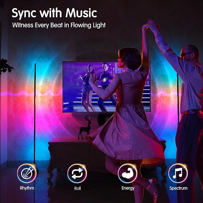 AIZAWA Led Corner Lamp, RGBICW Color Changing Corner Floor Lamp with Remote and App Control, Creative DIY Modes, Music Sync, Led Corner Light for Living Room, Bedroom, and Gaming Room