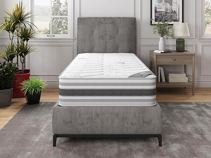 Ottomanson 12" Twin Mattress in a Box Made in USA, Firm Mattress, Hybrid Mattress Cool Improved Airflow with Edge to Edge Pocket Coil, Bed in A Box, Ottopedic