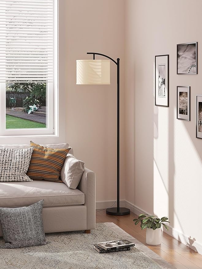 addlon Floor Lamp for Living Room with 3 Color Temperatures, Standing lamp with Linen lampshade for Bedroom, Office, Lamps with 9W LED Bulb Included - Black with Cream Lampshade