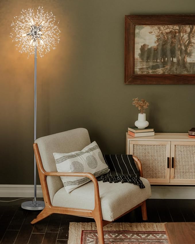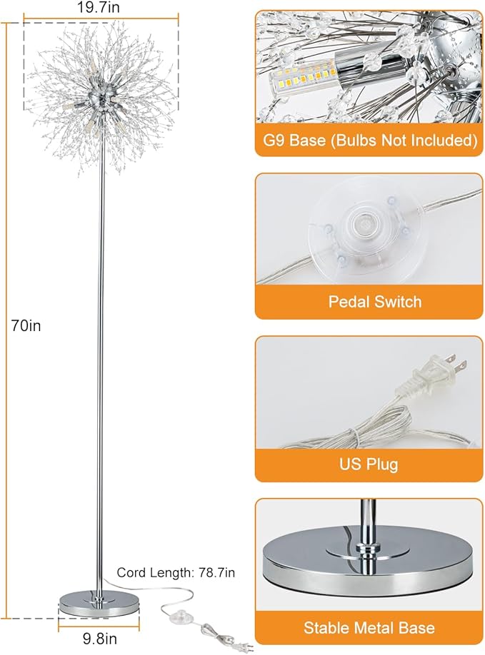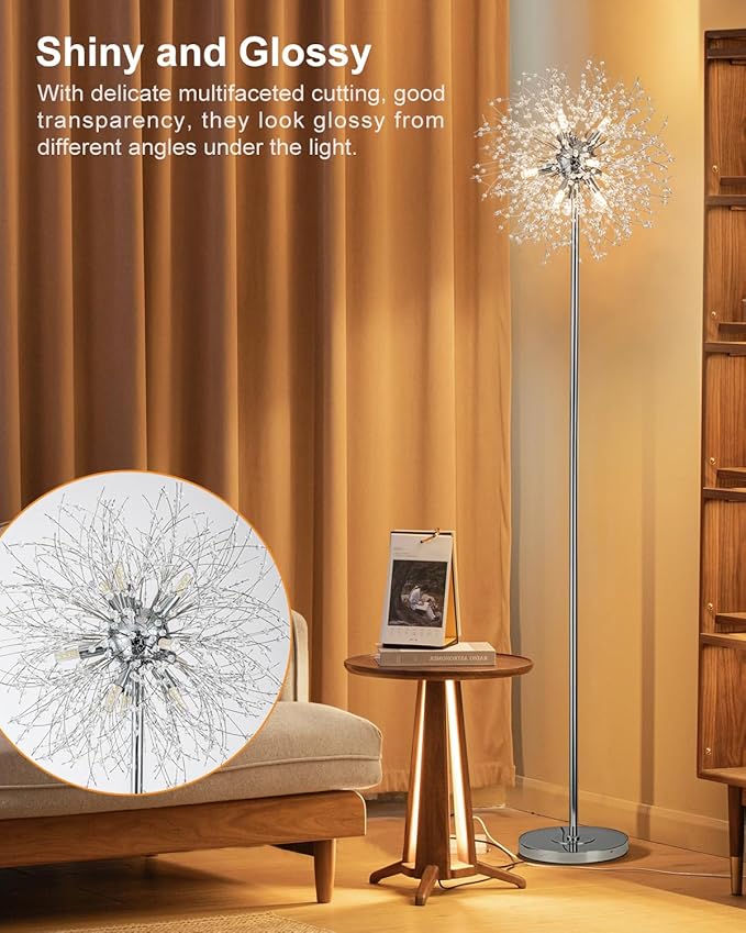 About This ➤[Unique Design] This elegant Crystal Floor Lamp is designed to resemble a dandelion after it’s blossomed, twinkling beautifully...