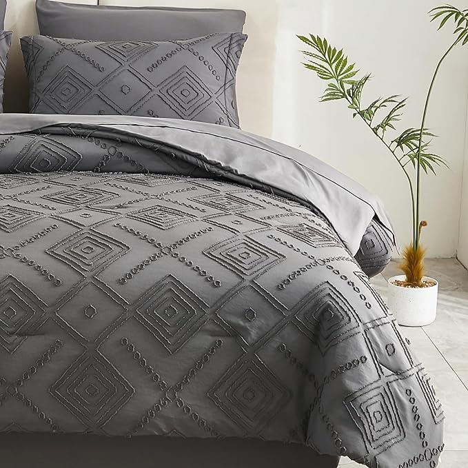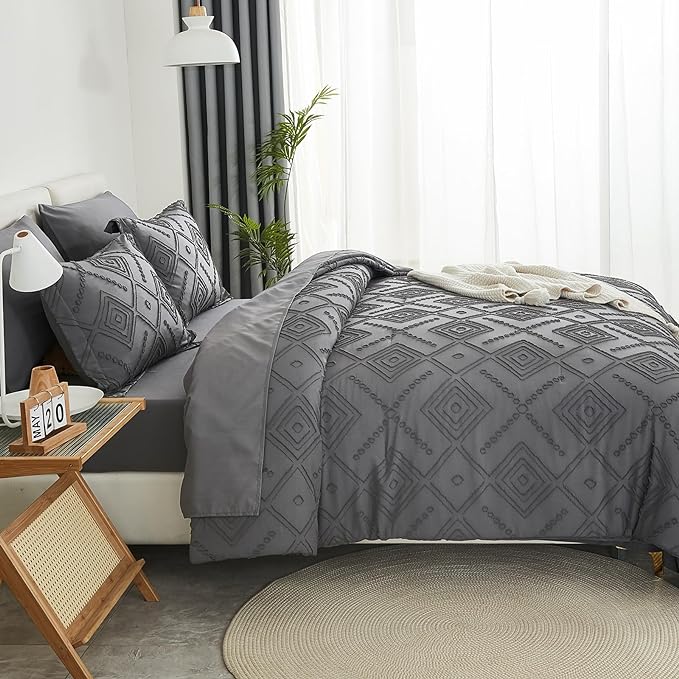 About This Boho Tufted Style: with embroidery shabby chic design, this dark grey comforter set fits various types of decoration,...