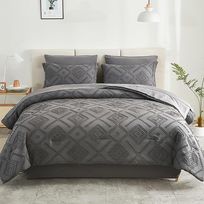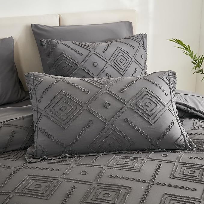 About This Boho Tufted Style: with embroidery shabby chic design, this dark grey comforter set fits various types of decoration,...