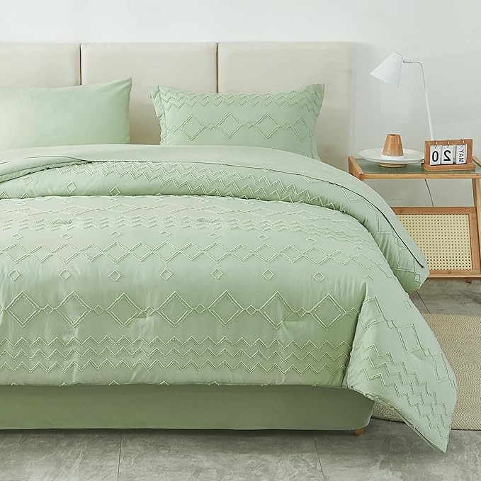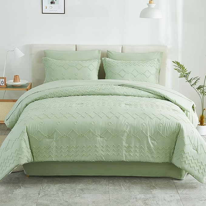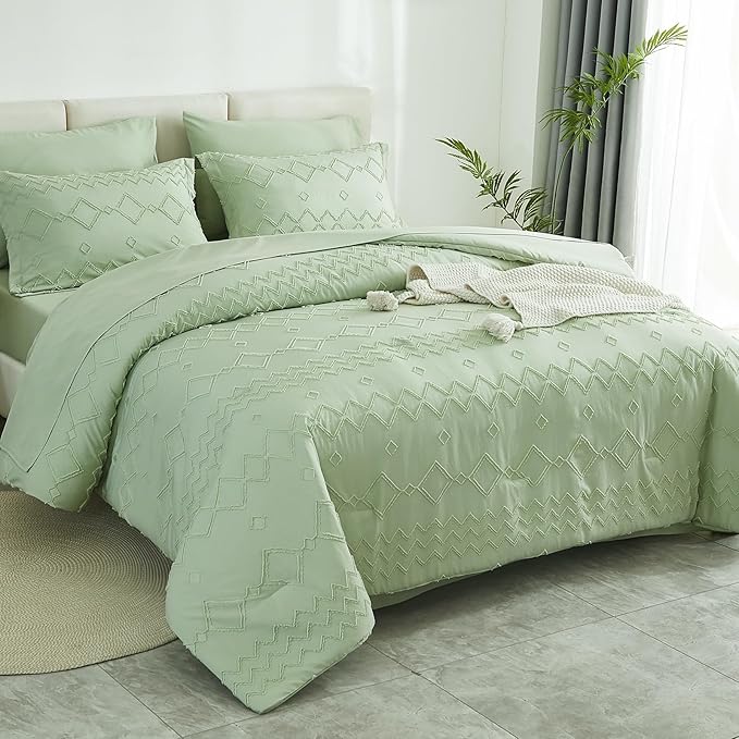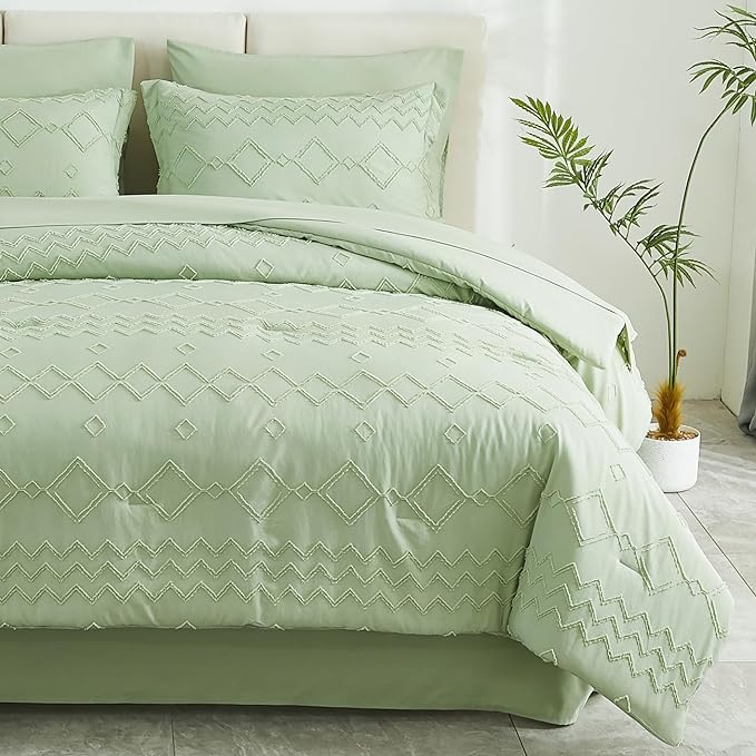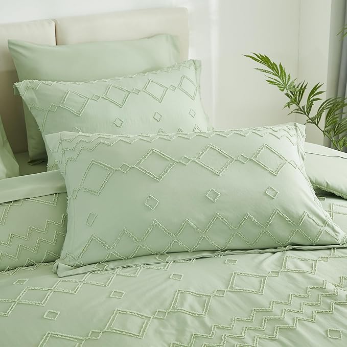 About This Boho Tufted Style: with embroidery shabby chic design, this sage green comforter set fits various types of decoration,...