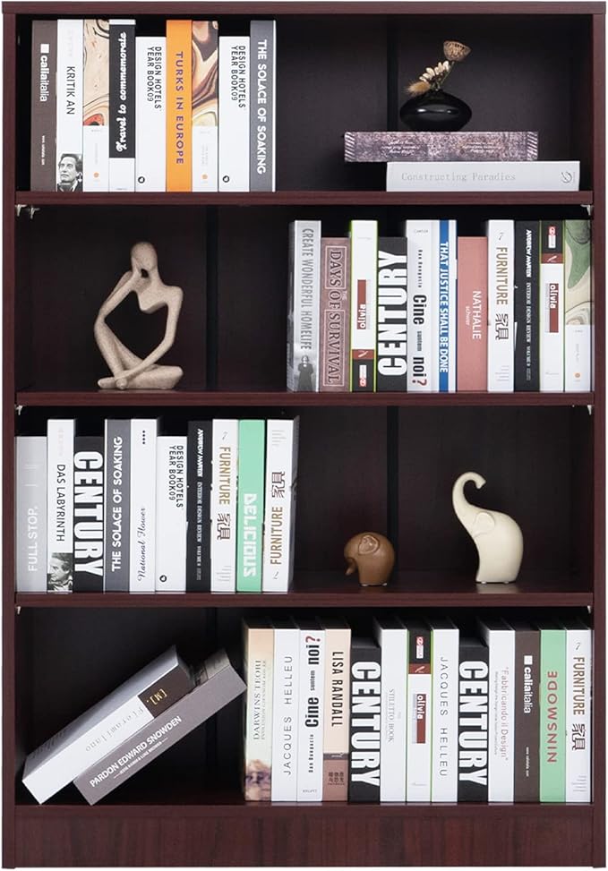 Farini Mahogany Bookshelf for Bedroom 4 Shelf Office Bookcase 48 Inches Tall Modern Wood Bookshelf for Living Room 4 Tier Wide Manga Bookshelf Library Bookcase