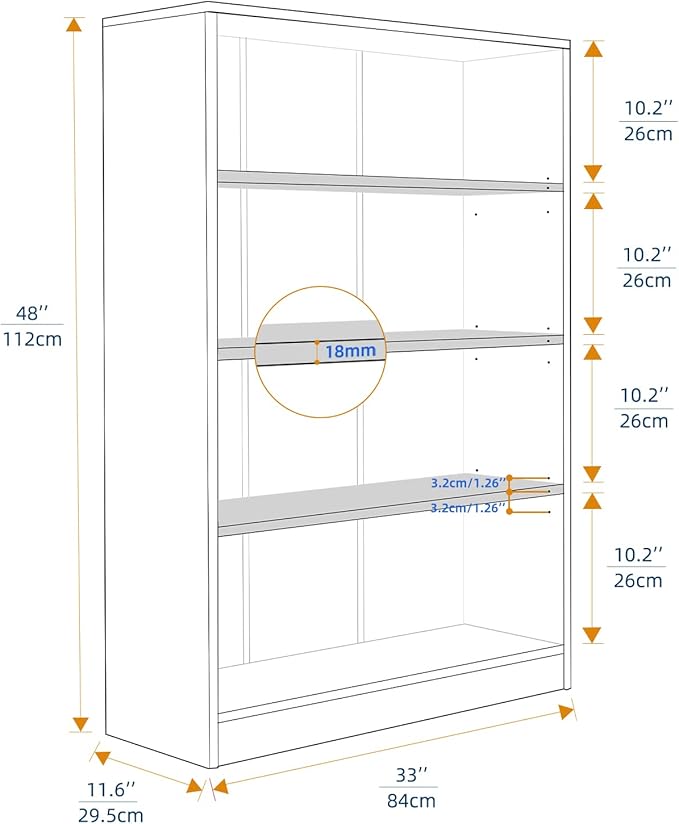 About This Large Storage Space: Features 4 shelf, practical and accessible storage shelf in 11.6"(D)*33"(W)*48"(H), the 4 shelf bookcase is...