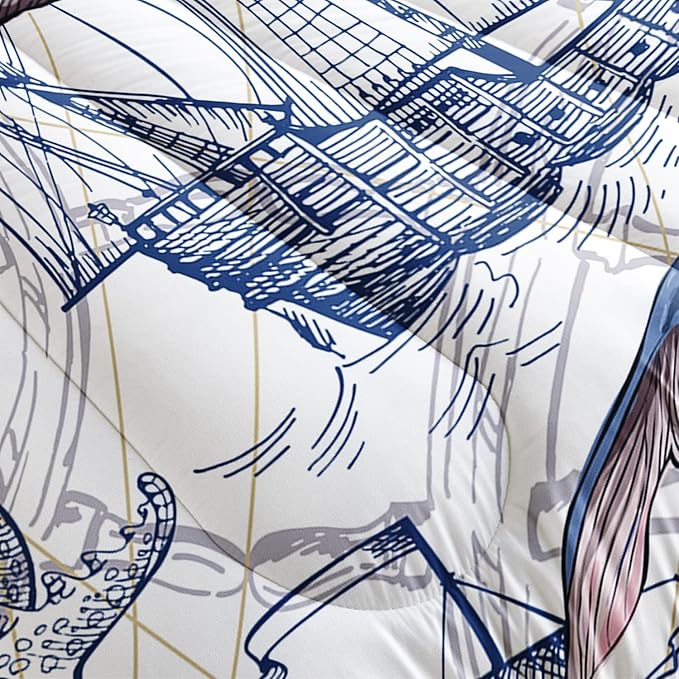 CVHOUSE Whale Comforter Set Full Size,Ocean Theme Bedding Set for Kids,Whale Nautical Sailing Quilt Set Ocean Duvet Set Ocean Decor 3 Pieces