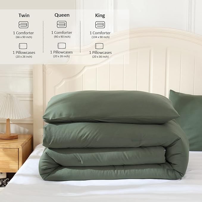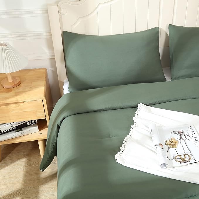 Emerald Green Comforter Twin Size, Modern Bedding Set for Girls/Women, Cute Soft & Lightweight Chic Microfiber Bed Sets, 2pc- 1 Comforter & 1 Pillowcase (66x90 Inches)