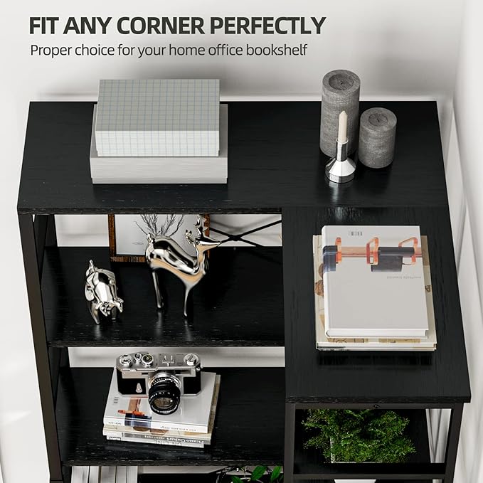 NUMENN 5 Tier Corner Bookshelf, Modern Corner Bookcase, Large Open Shelf Bookcase, Tall Bookshelves Storage Display Rack for Bedroom, Living Room and Home Office, Black