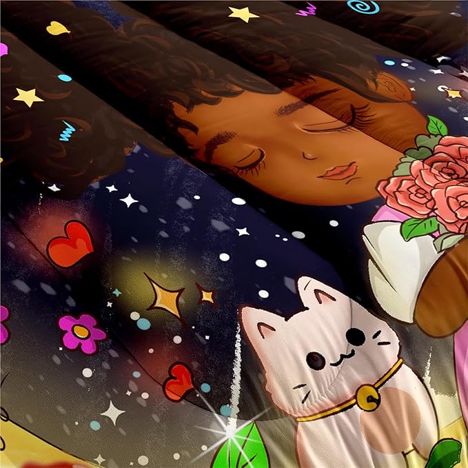 Black Girl Comforter Set Twin - 2Pcs Black Girl Twin Comforter Set for Girls, Twin Size Black Girls Bedding Set, Ultra Soft Breathable Starry Moon Prints Kids Comforter Set with 1 Pillowcase