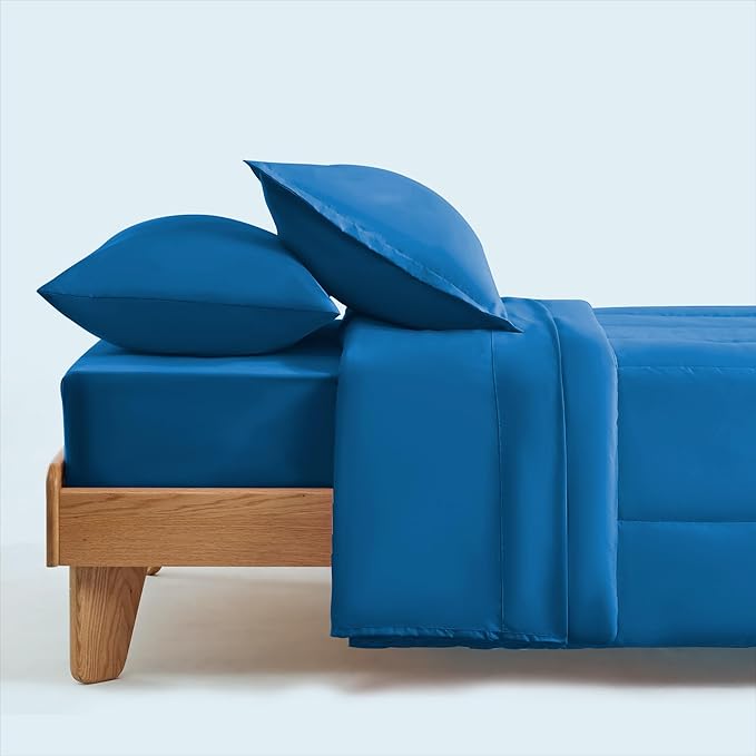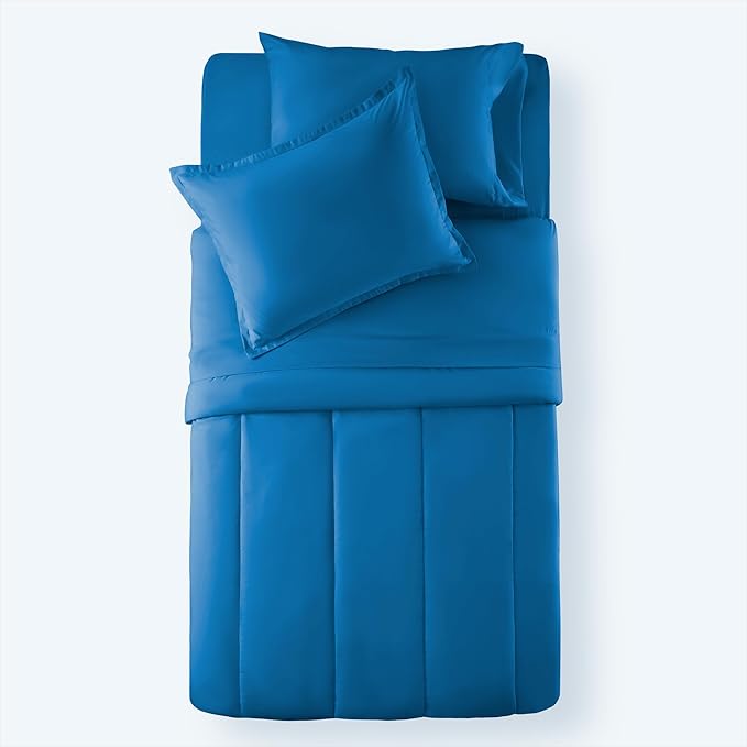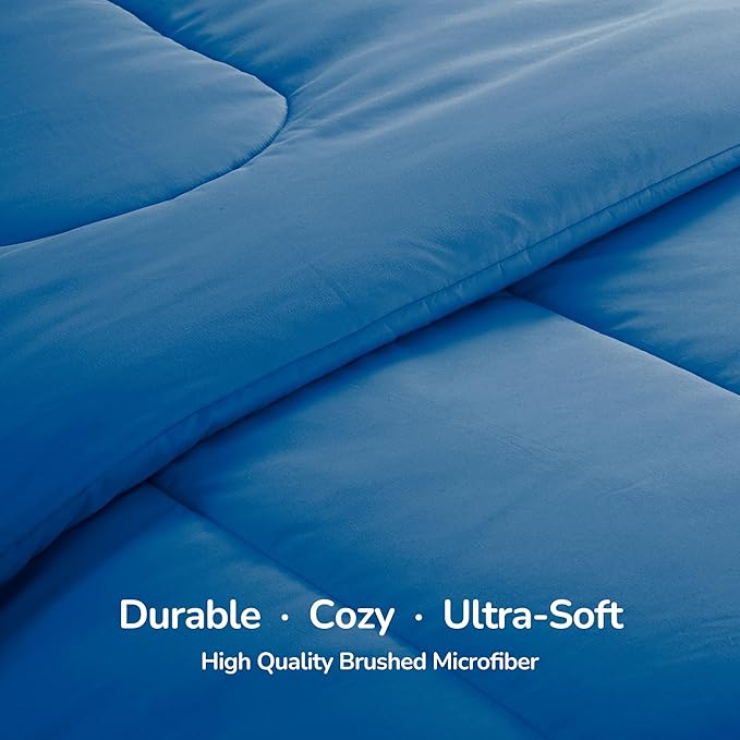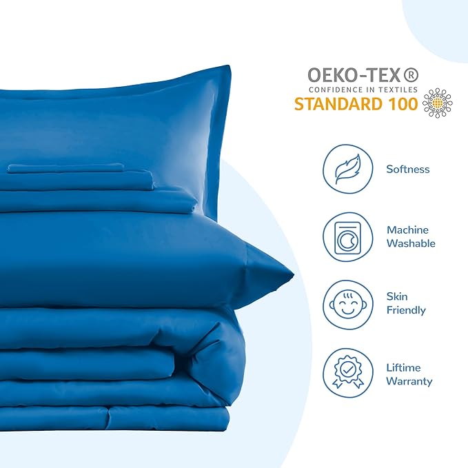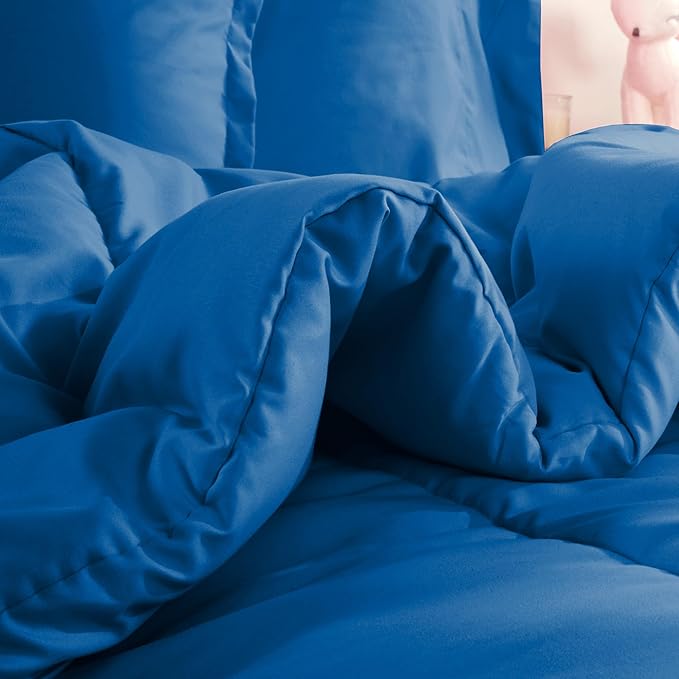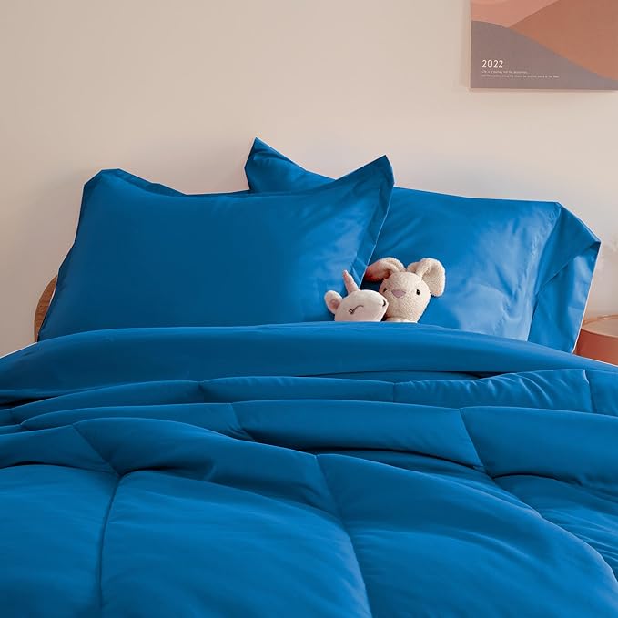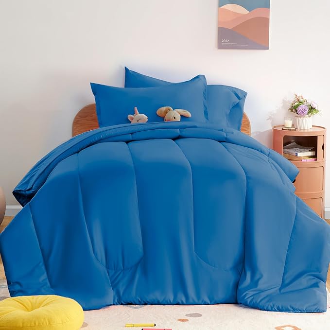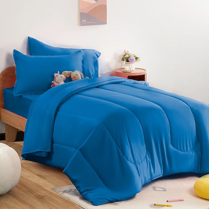 SLEEP ZONE Kids Bedding Comforter Set Full/Queen Size - Super Cute & Soft Kids Bedding 7 Pieces Set with Comforter, Sheet, Pillowcase & Sham (Blue)