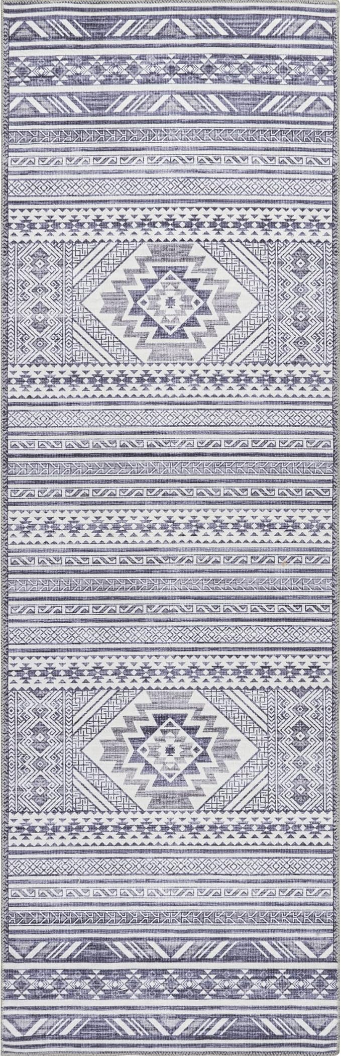 nuLOOM Jenine Southwestern Machine Washable Ultra Thin Runner Rug, 2' 6" x 8', Grey