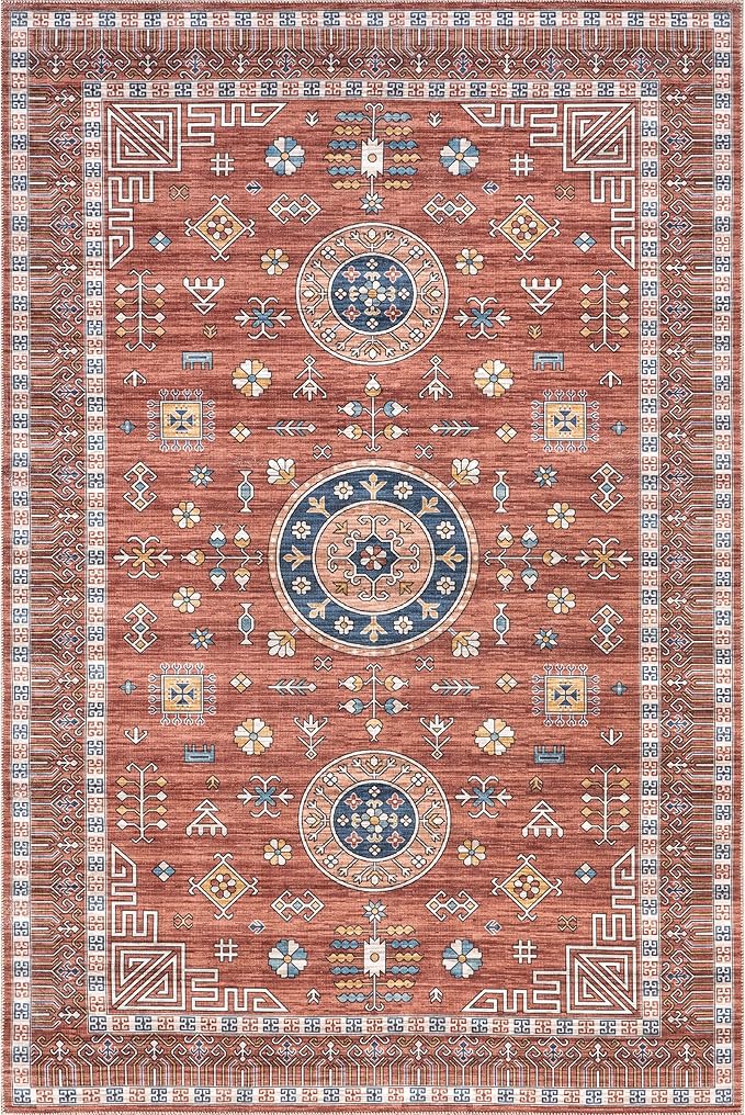 nuLOOM Tama Circle Medallion Machine Washable Ultra Thin Area Rug, 5x8, Red