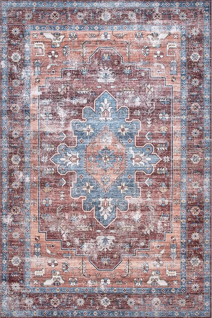 nuLOOM Zena Medallion Machine Washable Ultra Thin Area Rug, 6', Rust
