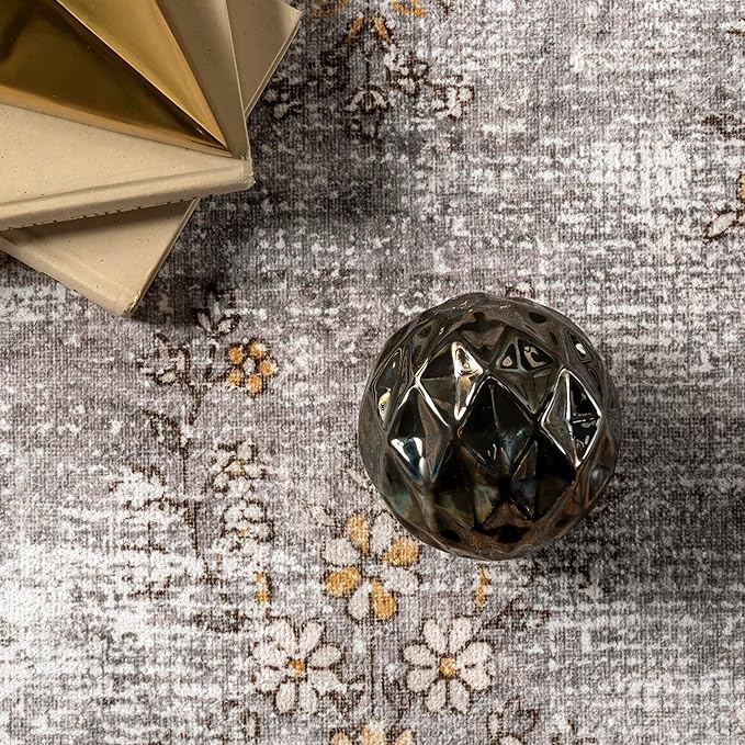 nuLOOM Ren Vintage Floral Machine Washable Ultra Thin Area Rug, 4x6, Light Grey