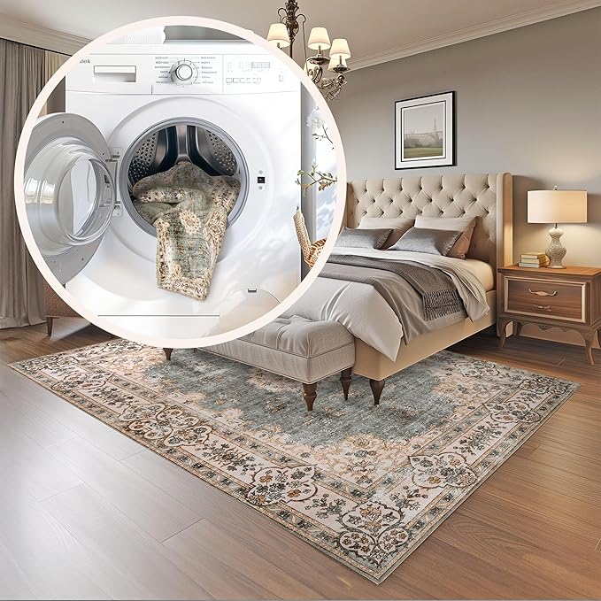 About This Stain-Resistant Material: Our machine washable rug is crafted from 100% Polyester that is stain-resistant, lightweight, and easy to...