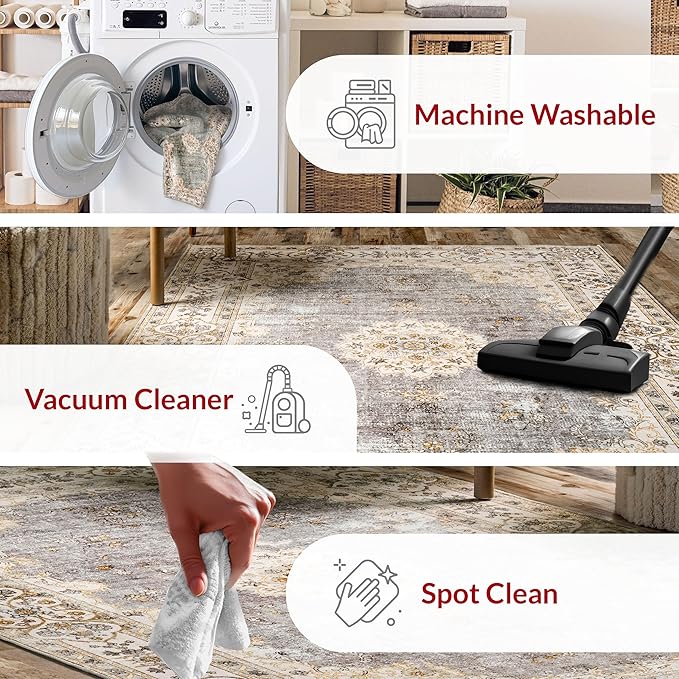 About This Stain-Resistant Material: Our machine washable rug is crafted from 100% Polyester that is stain-resistant, lightweight, and easy to...