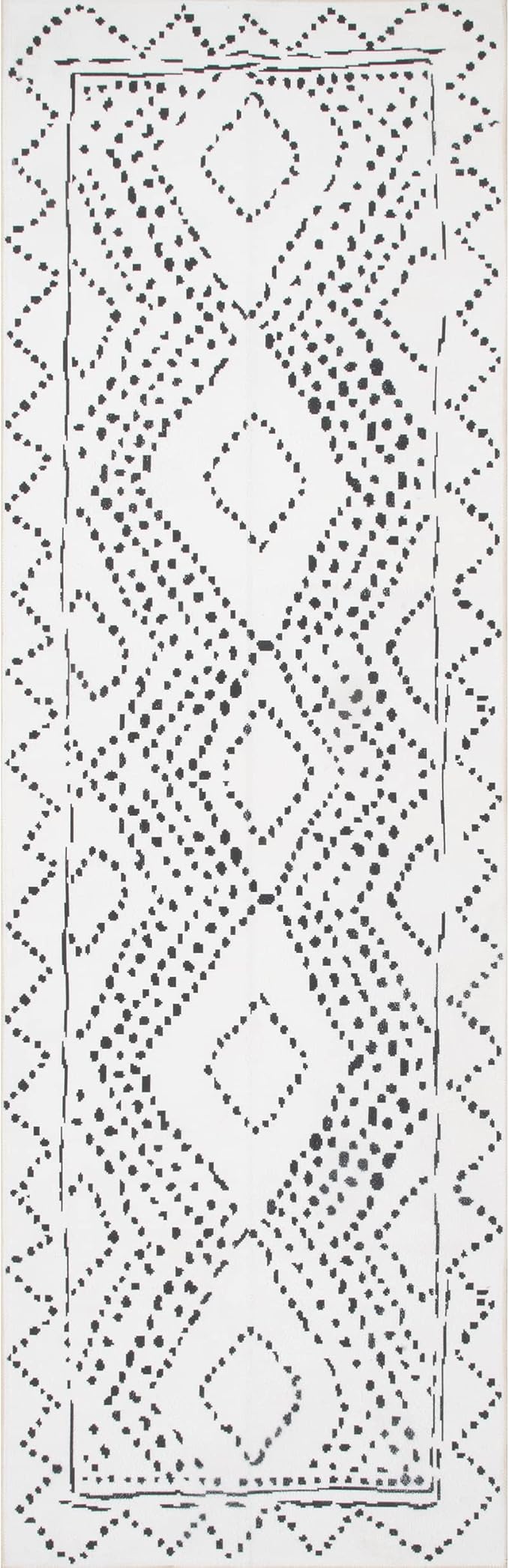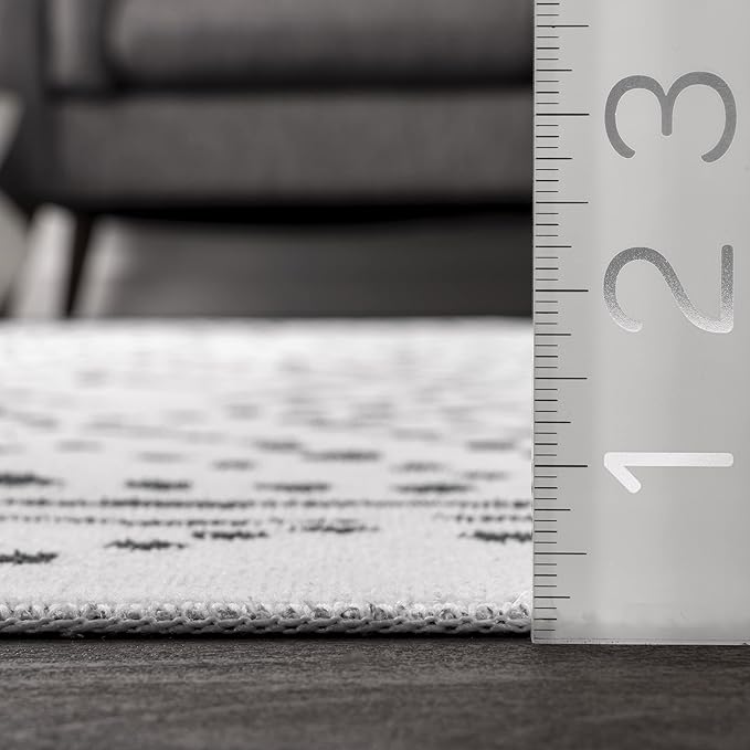 nuLOOM Mila Machine Washable Diamond Trellis Ultra Thin Runner Rug, 2' 6" x 6', White