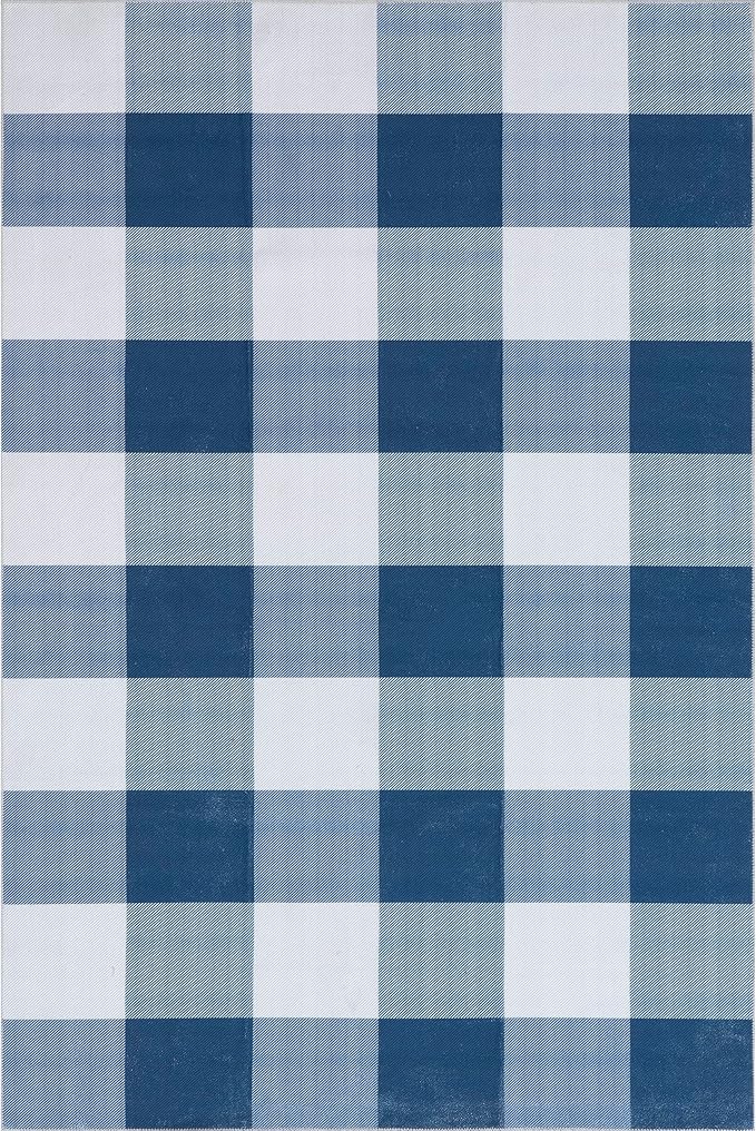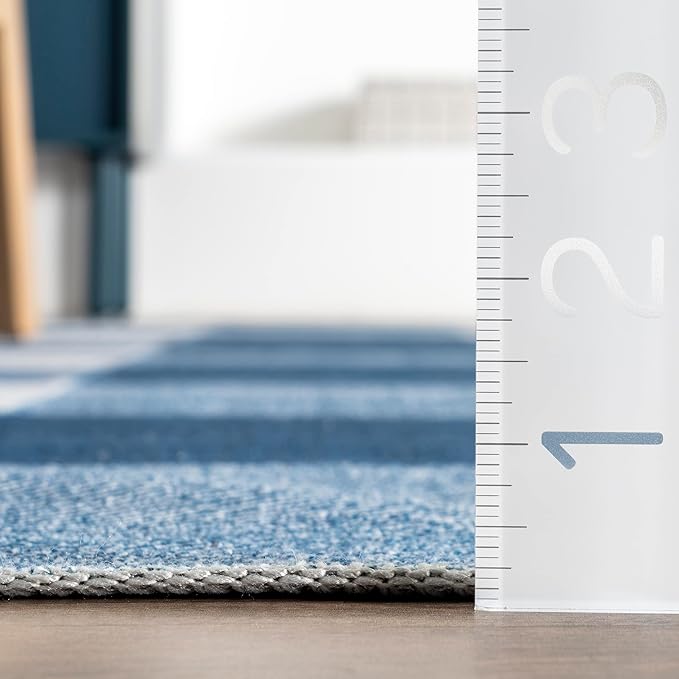nuLOOM Lucy Machine Washable Farmhouse Buffalo Plaid Ultra Thin Area Rug, 8x10, Blue