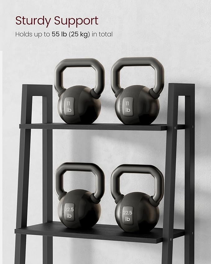 VASAGLE Ladder Shelf, 5-Tier Bookshelf, Storage Rack, Bookcase with Steel Frame, for Living Room Home Office, Kitchen, Bedroom, Industrial Style, Ebony Black + Black