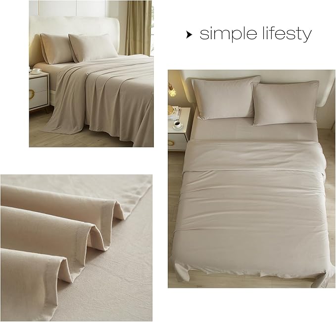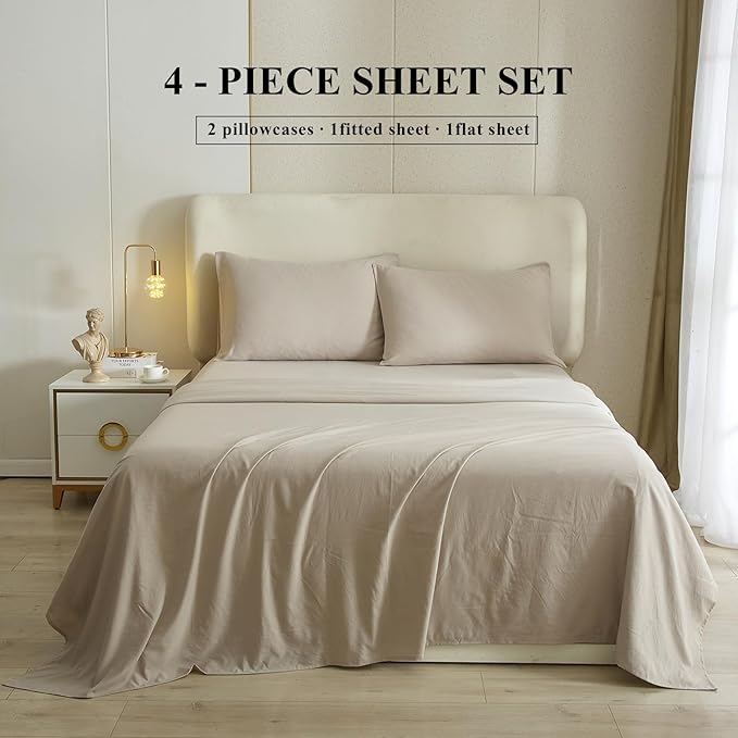 HighBuy Beige Full Size Sheet Set Extra Soft Deep Pocket Sheets Set,4 Piece Bed Fitted Sheets Fit 16 Mattress,Wrinkle,Fade,Stain Resistant Cooling Bed Sheets,Fitted Sheets,Pillowcases Set (Full,Beige)