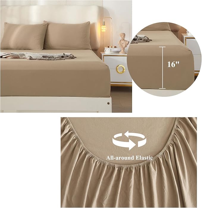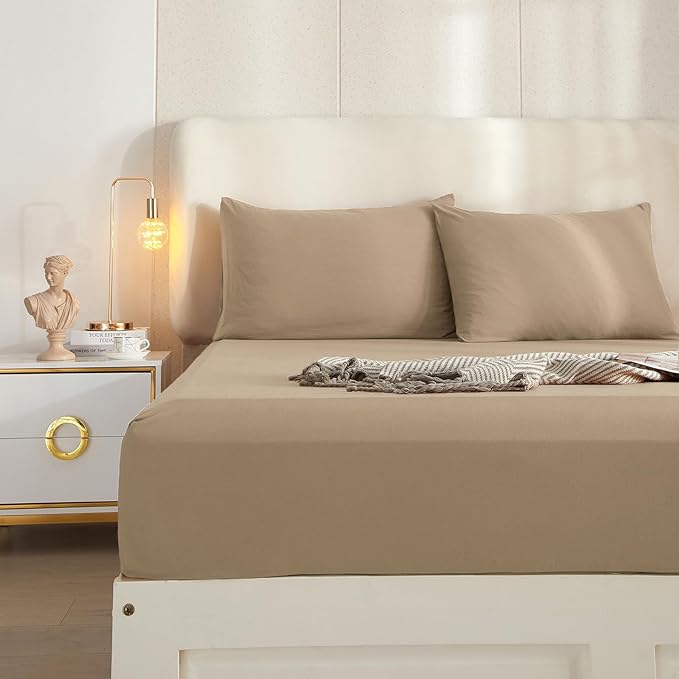 HighBuy Full Size Sheet Sets Khaki - 4 Piece Bed Sheets and Pillowcase Set for Full Bed Mattress - Cooling Sheets Soft Deep Pocket Sheets,Fitted Sheets,Full Bed Sheets,Khaki