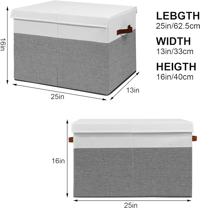 Large Toy Storage Box with Lid, Sturdy Toys Storage Chest Bin Organizer Basket with Dividers for Kids, Boys, Girls, Nursery, Closet, Bedroom, Playroom 25"x13" x16" (Grey and White)
