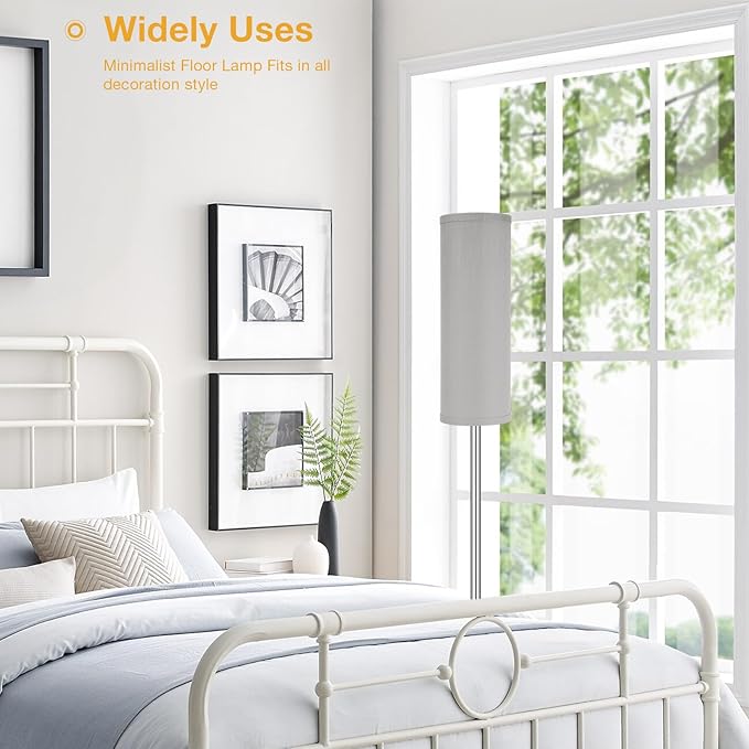 Ambimall Floor Lamp for Living Room - Pole Lamps for Bedrooms, Silver Standing Lamps with Grey Shade, 66'' Tall Lamp for Office, Minimalist Floor Lamp for Home Decor