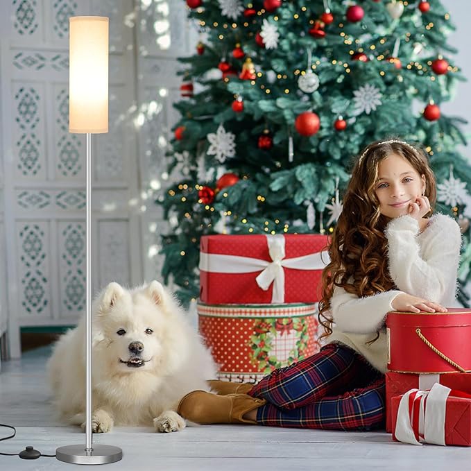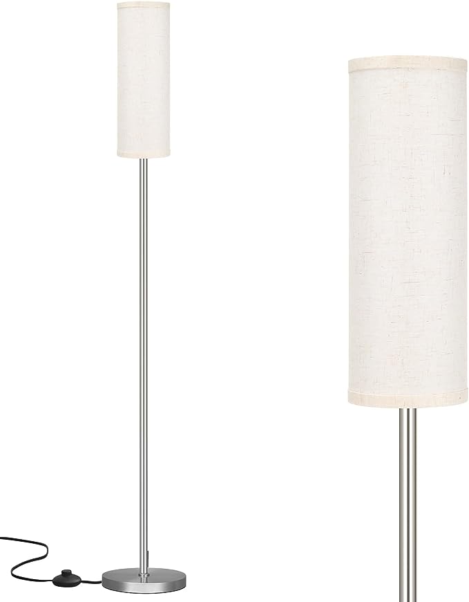 Ambimall Floor Lamp for Living Room - Pole Lamps for Bedrooms, Silver Standing Lamps with Beige Shade, 66'' Tall Lamp for Office, Minimalist Floor Lamp for Home Decor
