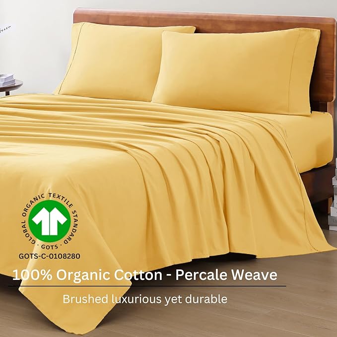 LANE LINEN 100% Organic Cotton Full Sheets Set, 4-Piece Pure Organic Cotton Percale Sheets, Long Staple Cotton Sheets, Ultra Soft Bedding Sheets, Breathable,Fits Mattress Upto 15" Deep - Cocoon