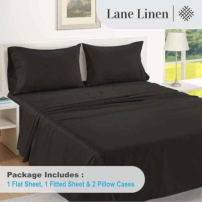 LANE LINEN 1000 Thread Count Striped Sheets Set - 100% Egyptian Cotton Bed Sheets, 4 Piece Cotton Sheets for King Size Bed, Hotel Bedding Sheets & Pillowcases, Fits Upto 17" Mattress - Black