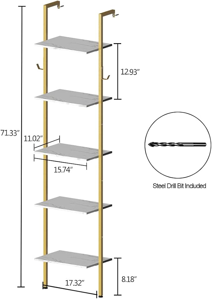 About This 【Space-Saving】This 5-tier ladder bookshelf uses a wall-mounted design. The open layout makes the book shelf ideal for storage...
