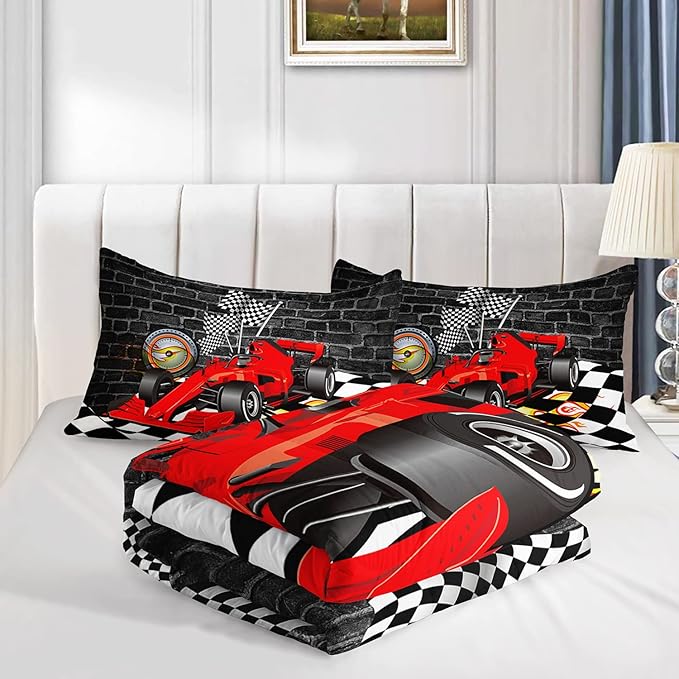 Axolotl Race Car Comforter Set Full Size,Extreme Sports Bedding Set for Boys Teens Kids Girls Room Decor,Cool Speed Car Quilt Bed Set with 1 Comforter 2 Pillowcases Car Racing Gifts,Black Red