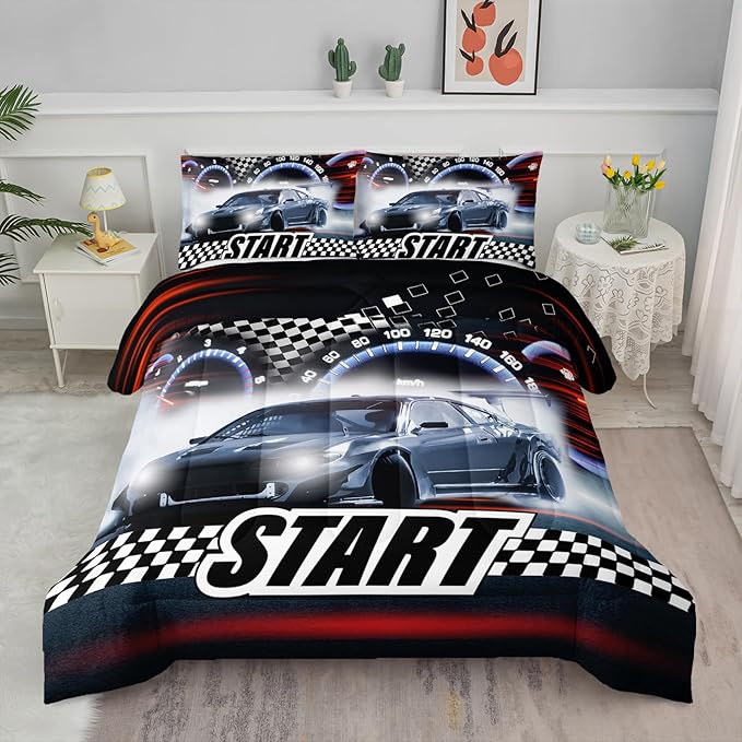 Axolotl Race Car Comforter Set Queen Size,Extreme Sports Bedding Set for Boys Teens Kids Girls Room Decor,Cool Speed Luxury Car Quilt Bed Set with 1 Comforter 2 Pillowcases Car Racing Gifts