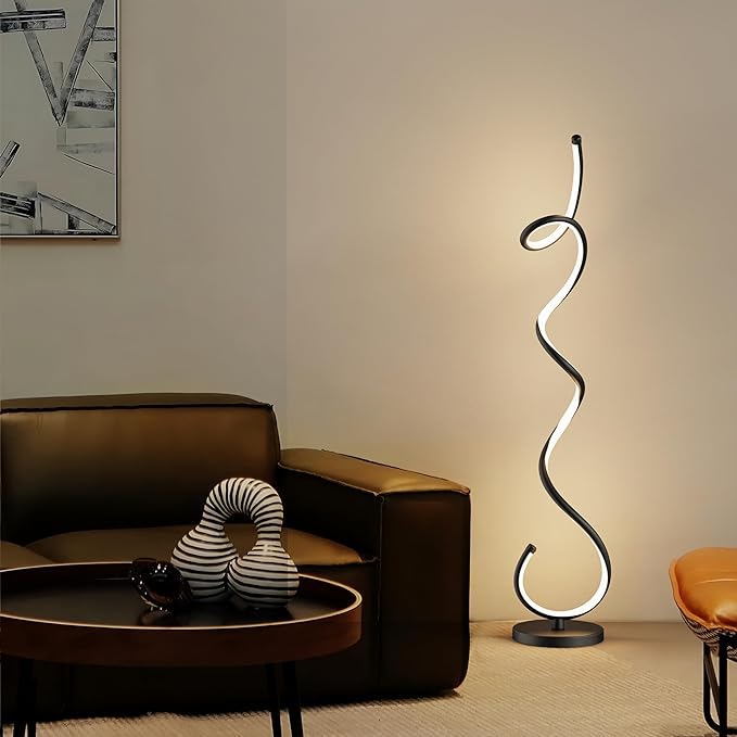 Modern Floor Lamps for Living Room, LED 53" Tall 30W Black Spiral Corner Floor Lamp with Remote, 3 Color Temperature, Stepless Dimmable, Bright Standing Lamp for Bedroom Home Office Deco