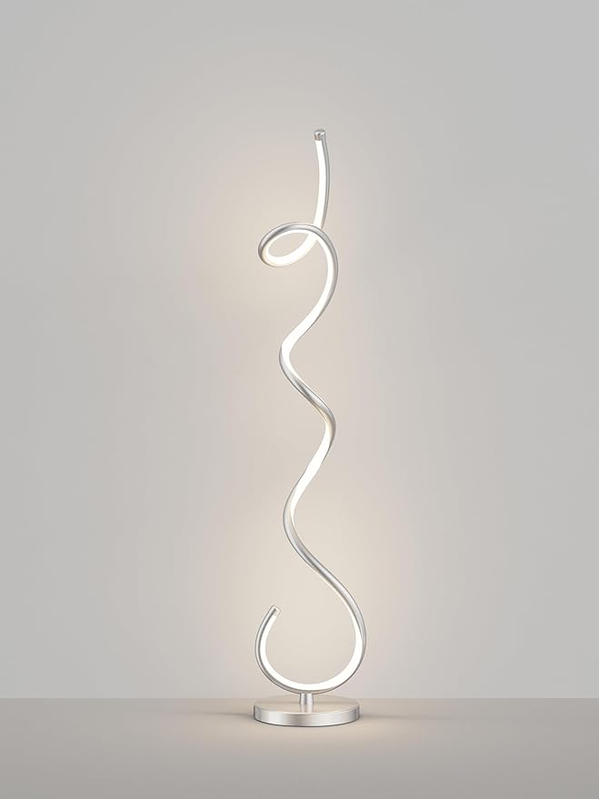 Modern Floor Lamps for Living Room, LED 53" Tall 30W Silver Spiral Corner Floor Lamp with Remote, 3 Color Temperature, Stepless Dimmable, Bright Standing Lamp for Bedroom Home Office Deco