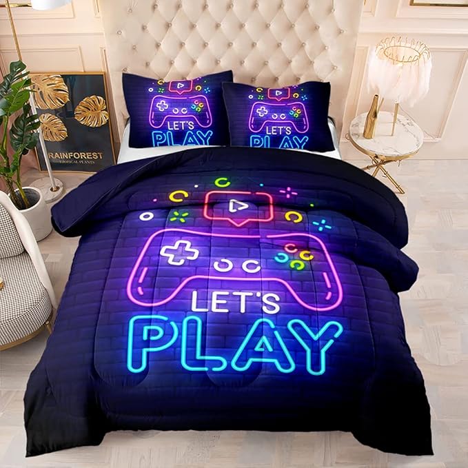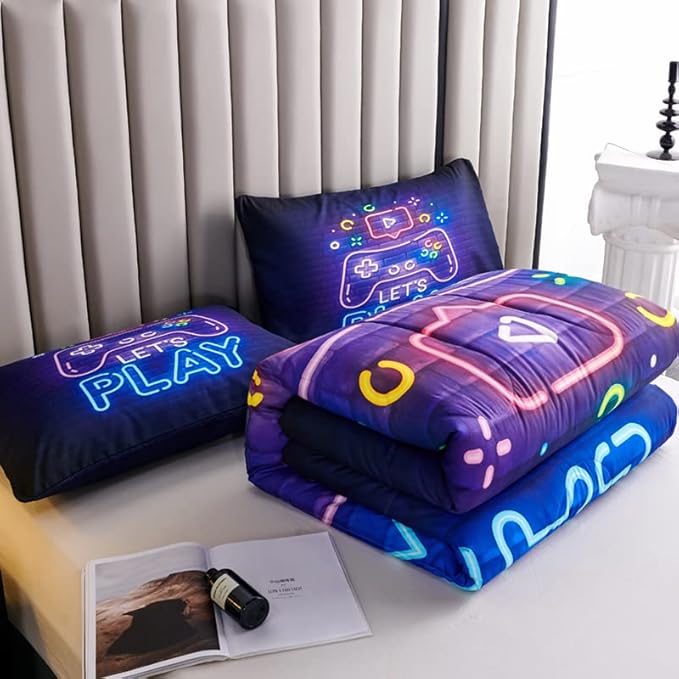 Gamer Bedding Sets for Boys,Twin Comforter Set for Boys,Gaming Comforter Set for Boys,Kids Bedding Twin with 2 Gamer Pillowcases,Microfiber Boys Bed Set,All Season Use