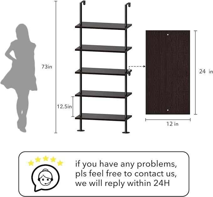 About This 【Perfect Size for Home Decor】 73" high overall, with 12.5" each tier. Shelf 24 × 12inch. 【Easy Assembly】...