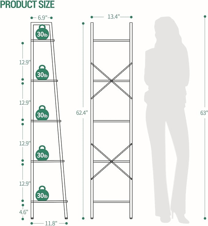 About This 【Industrial Design】Combining the rustic brown shelves and ladder design, this ladder shelf gives an eye-catching look and injects...