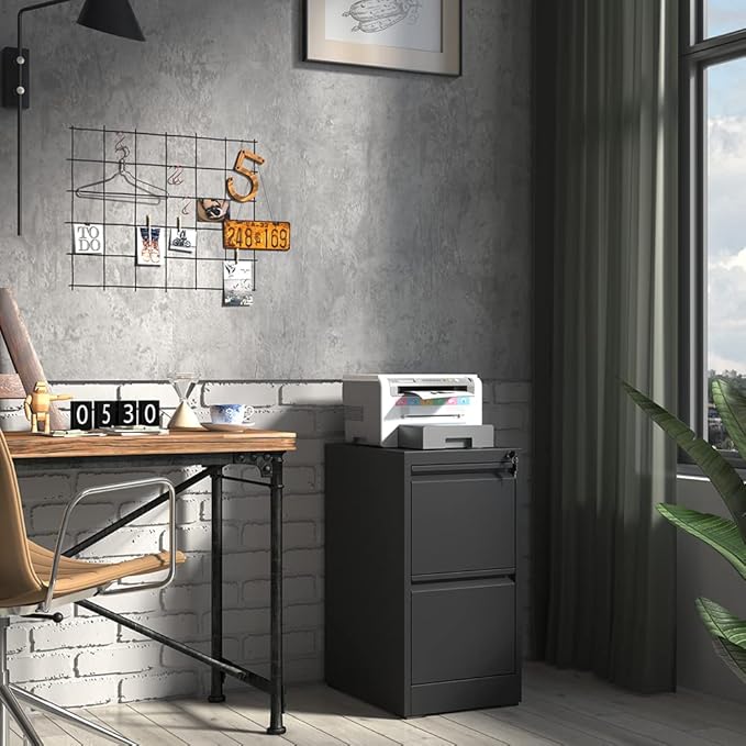 2 Drawer File Cabinet,Black Metal Filing Cabinets for Home Office,Vertical File Cabinet with Lock for A4/Letter/Legal Size Files,Assembly Required