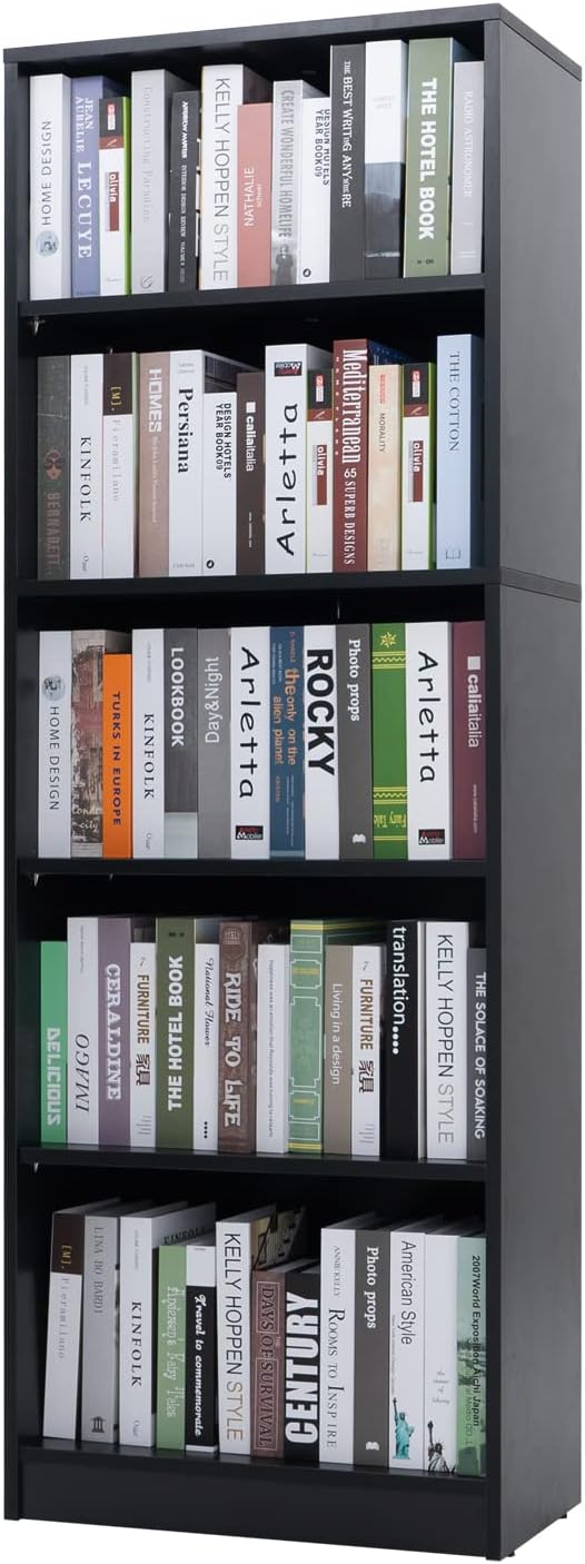 Sunon 5 Shelf Wood Bookcase Freestanding Display Shelf Adjustable Layers Bookshelf for Home Office Library Small Narrow Space (Black, 5-Layers)