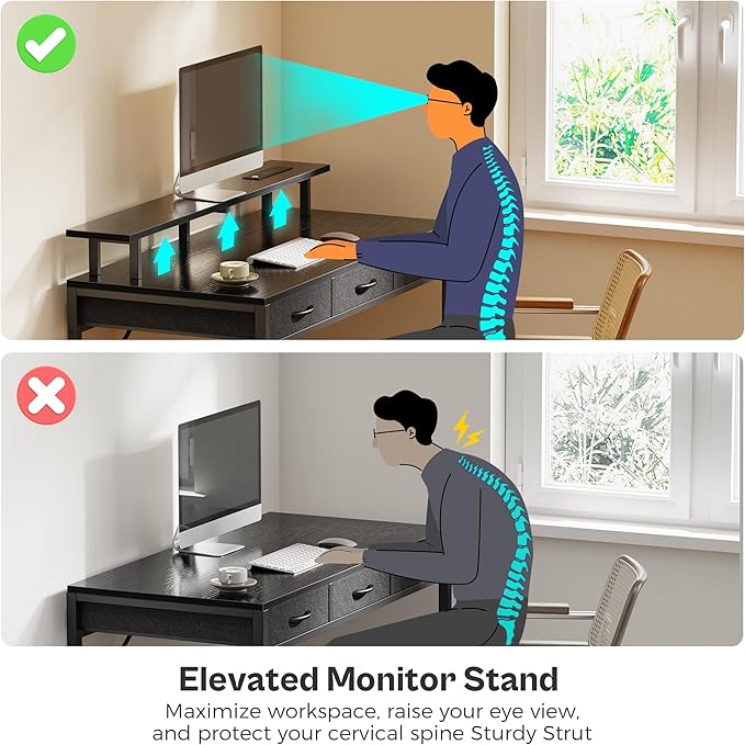 About This 【Computer Desk with Drawers】- PATENT PENDING! Using an RF remote control to turn off the lights, the desk...