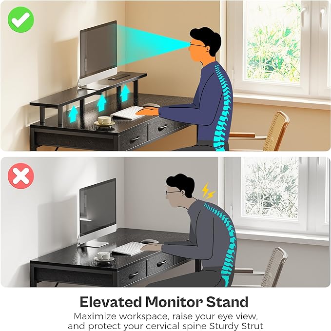 About This 【Computer Desk with Drawers】- PATENT PENDING! Using an RF remote control to turn off the lights, the desk...