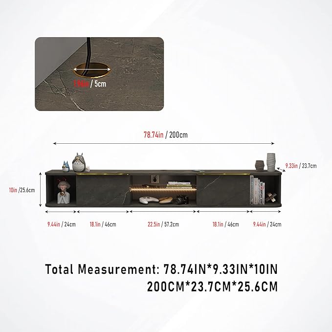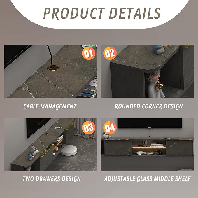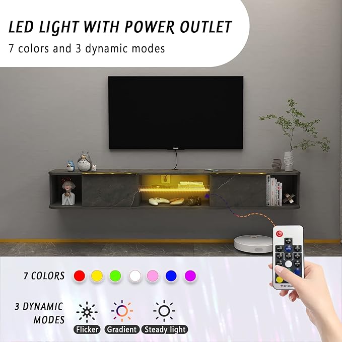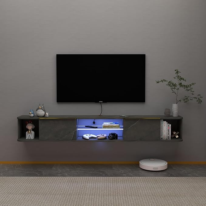 Pmnianhua LED Floating TV Stand with 2 Drawers for 80 inch TV,78'' Floating TV Shelf with LED Lights,Wall Mounted TV Console,Floating Shelf for Under TV (Dark Grey)