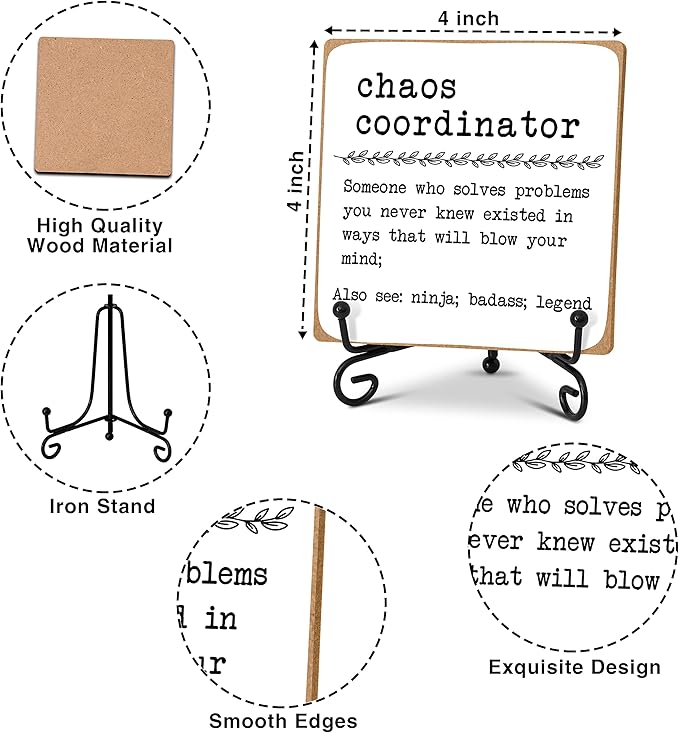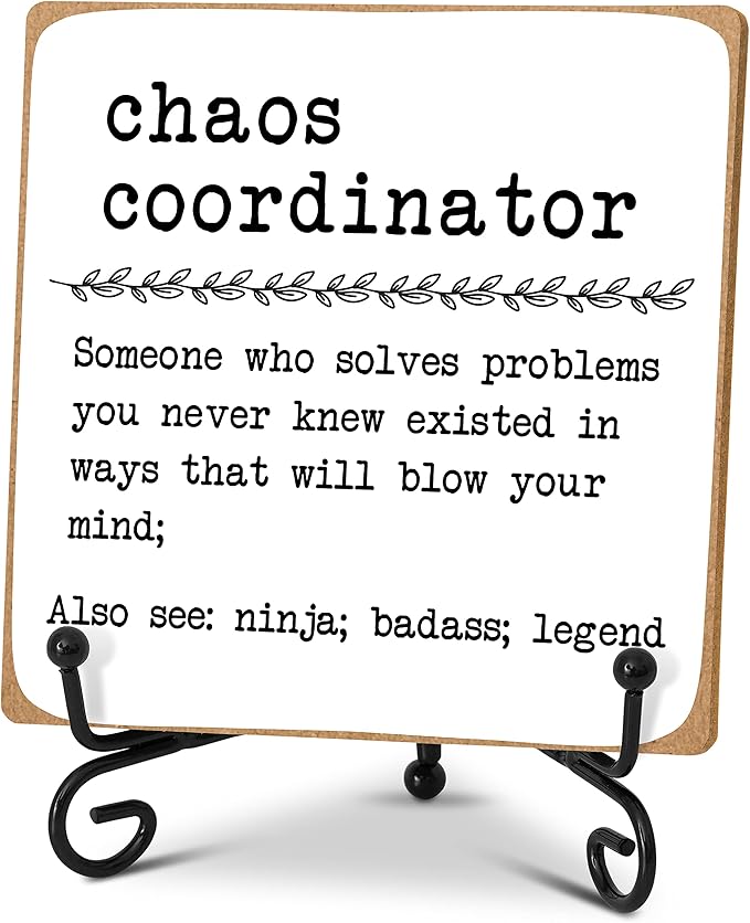 Chaos Coordinator Home Office Desk Decor Wood Plaque with Stand, Unique Gift Idea for Boss Women, Best Mom, Coworker, Teacher, School Counselor Therapy Office Decor -A13